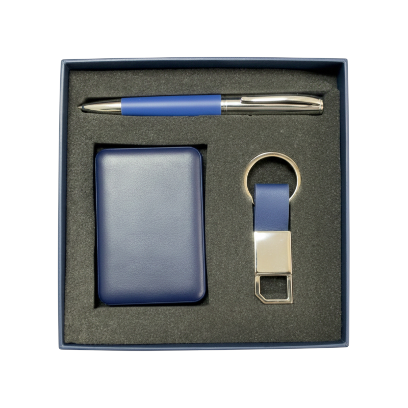 Coffret élégant en cuir regroupant un stylo, un porte-carte et un porte-clés, idéal pour valoriser votre image de marque. Grâce à son design raffiné et sa matière de qualité, ce coffret est à la fois pratique et esthétique. Personnalisable à votre logo, il deviendra un support publicitaire précieux auprès de vos clients et partenaires. Offrez un cadeau qui marquera les esprits et boostez votre visibilité!