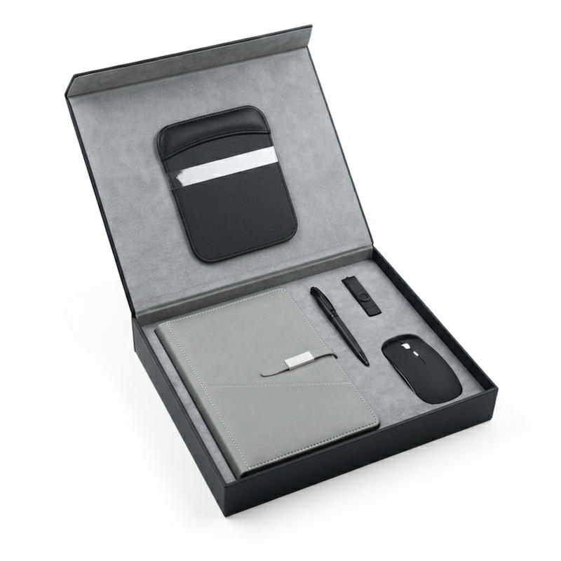 Mettez en valeur votre marque avec ce coffret de bureau élégant et fonctionnel. Composé d’un carnet, d’un stylo, et d’une souris, il offre tout le nécessaire pour une expérience de travail optimale. La finition soignée de ses accessoires renforce votre image professionnelle. Idéal pour les cadeaux d’entreprise, ce coffret se personnalise facilement avec votre logo, garantissant une visibilité accrue et un impact durable. Offrez à vos partenaires un cadeau mémorable et pratique.