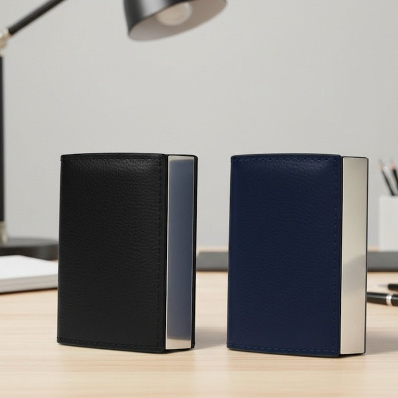 Porte-cartes élégant en simili cuir pour une image professionnelle lors de vos échanges. Avec son design moderne et sa finition soignée, il garde vos cartes en sécurité tout en mettant en avant votre logo grâce à sa surface personnalisable. Durable et pratique, cet accessoire indispensable est idéal pour renforcer votre visibilité auprès de vos clients et partenaires. N’attendez plus pour faire une impression durable, pensez également à l’associer à un stylo personnalisé !